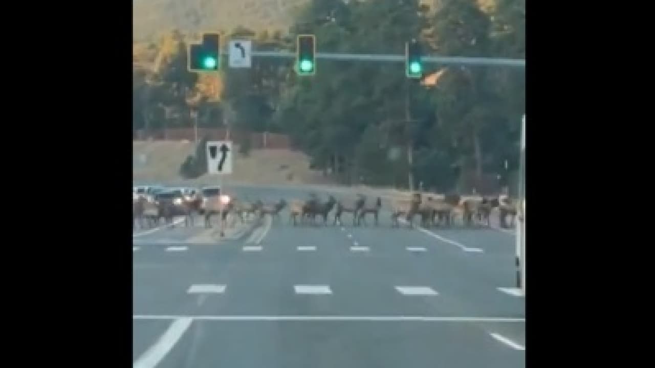 Decenas de alces obligaron a parar el tránsito en una carretera interestatal de Colorado en plena hora punta de la mañana cuando cruzaron ordenadamente y por el paso correcto la vía. Solamente les faltó respetar el semáforo.