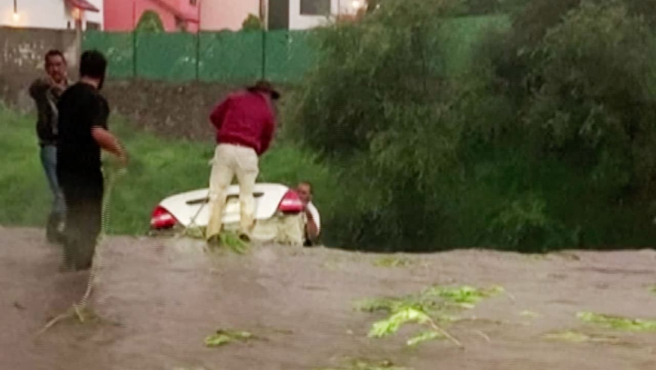 El momento en el que rescatan a un hombre que cayó a un río durante una tormenta en México