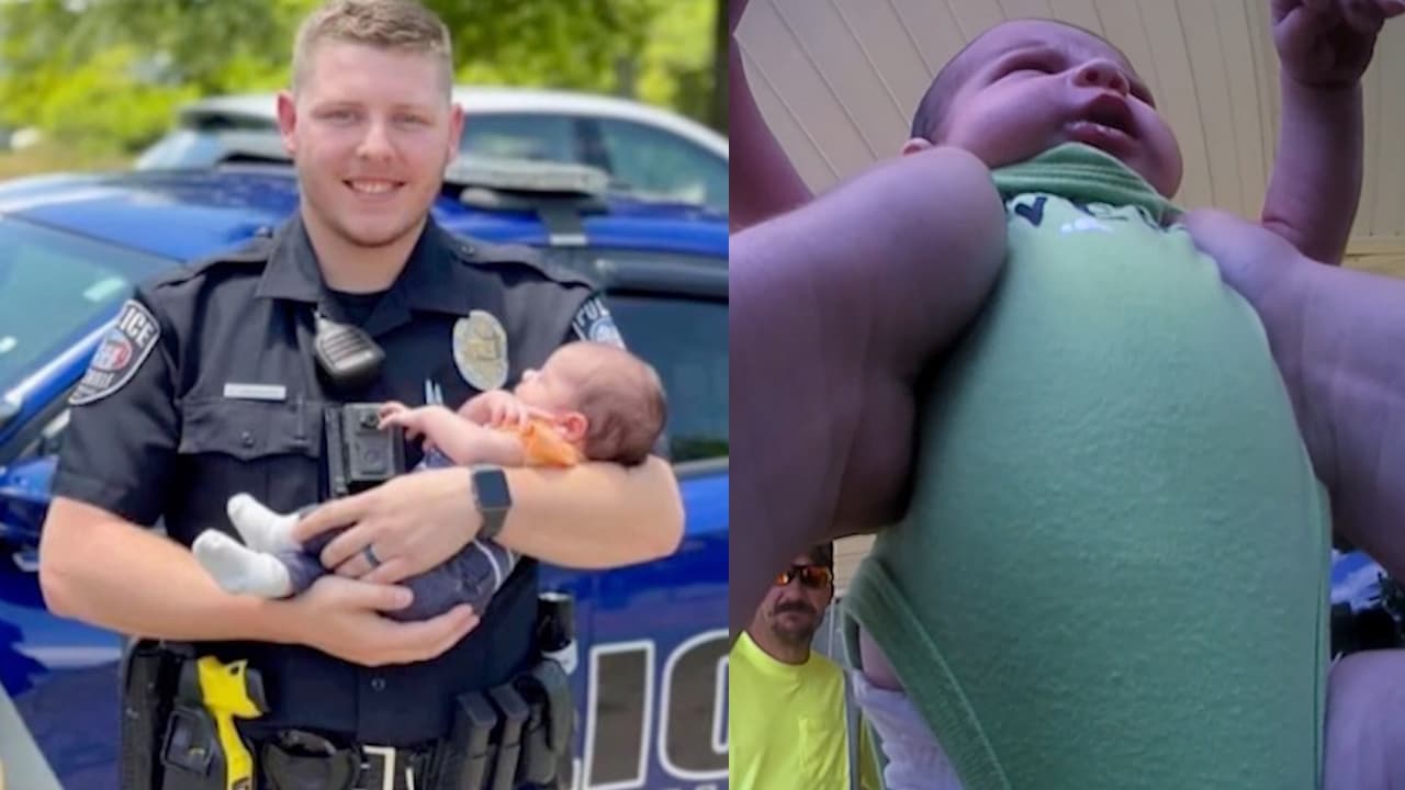 El momento en el que un policía novato le salva la vida a un bebé que se asfixiaba
