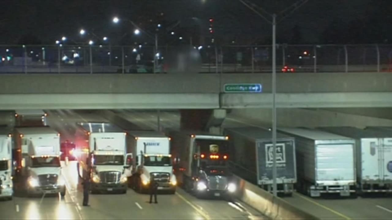 Esta carretera interestatal en Michigan estuvo cerrada por unas tres horas mientras la policía y los 13 camioneros intentaban impedir que el hombre se tirara del puente.