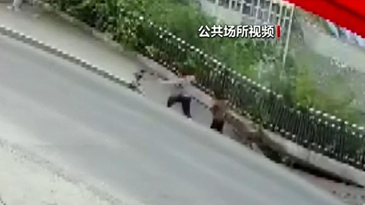 Cámaras de vigilancia capturaron el momento en que dos peatones que caminaban por la acera cayeron en un profundo pozo cuando la acera colapsó.