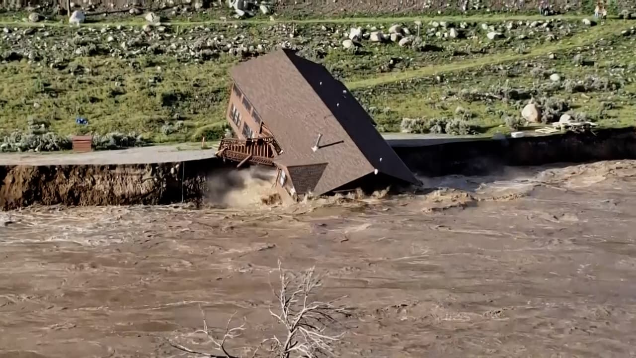 Testigos grabaron el momento en que las bases de la residencia de los empleados del Parque Nacional Yellowstone cedieron hasta que esta fue arrastrada río. Sigue las últimas noticias en Univision.