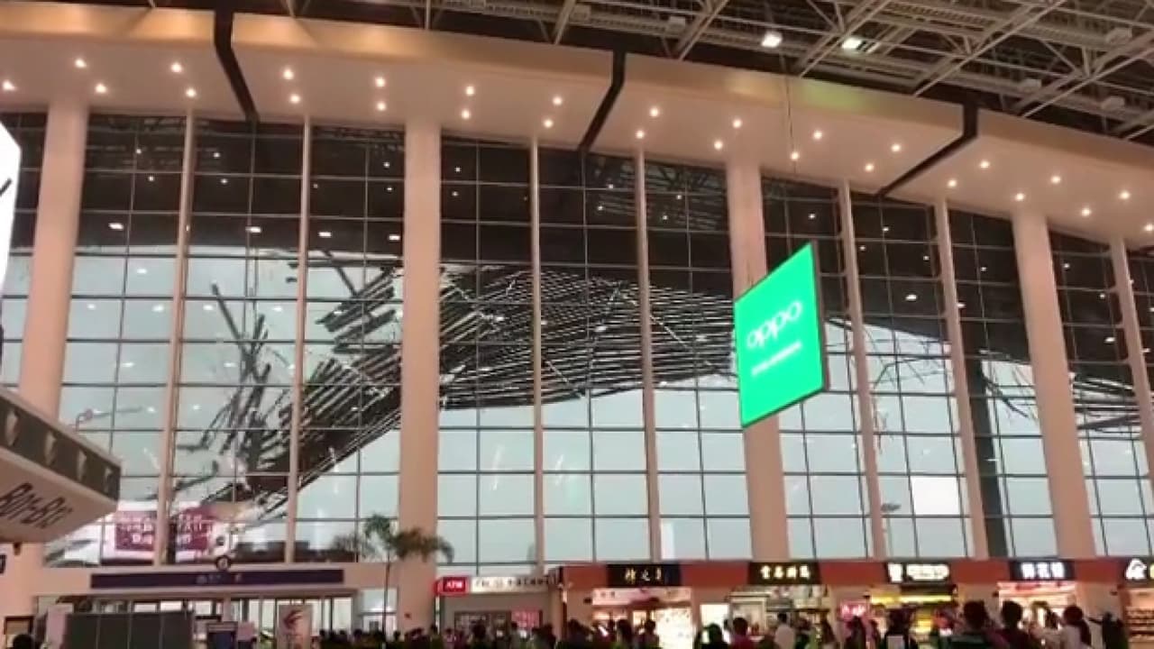 El momento en que el techo de un aeropuerto en China se desploma en plena tormenta