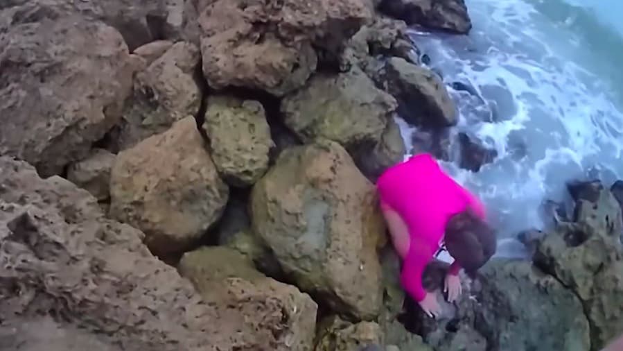 La Policía de Clearwater Florida hizo publico el video del momento en que la encontró sobre unas rocas cerca de un sitio de construcción.