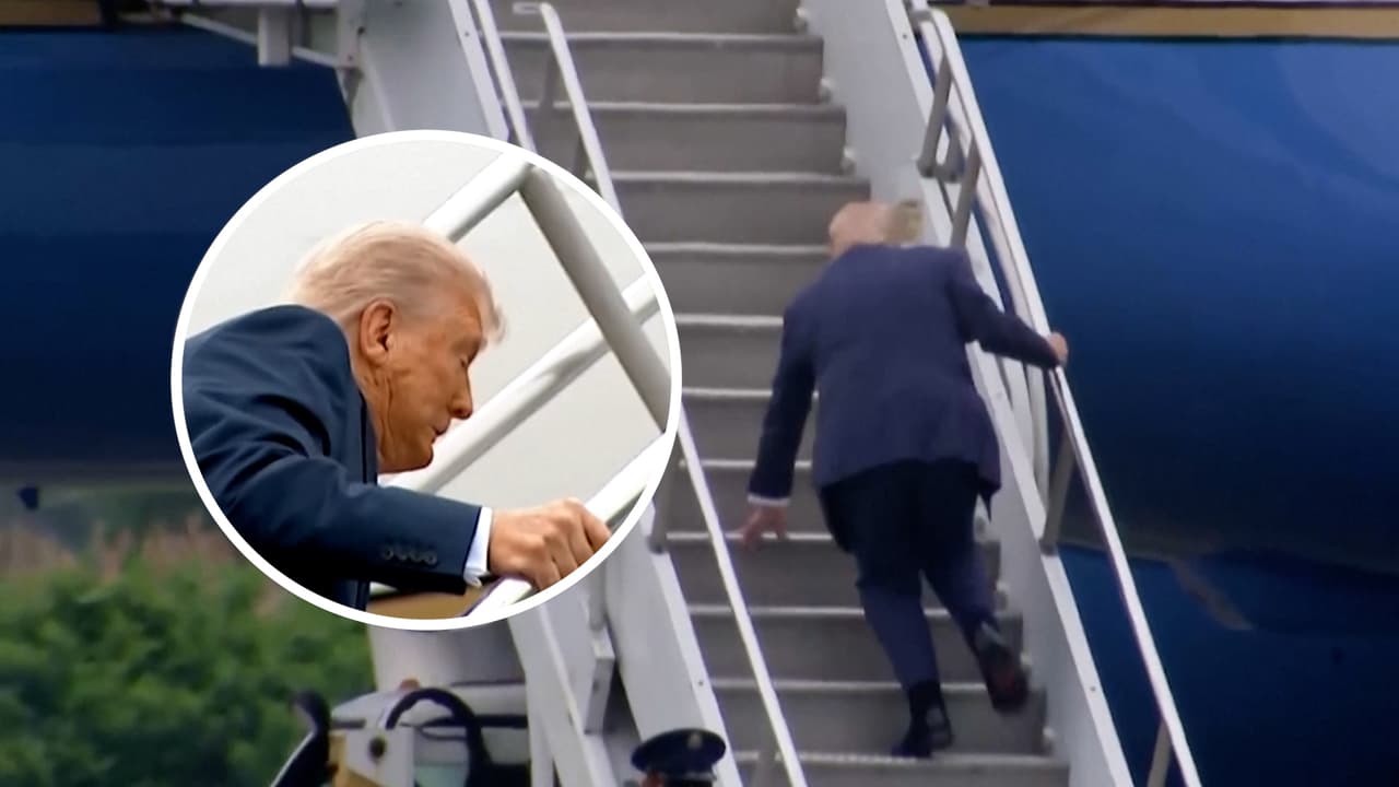 El momento en que Trump se tropieza al subir las escaleras del Air Force One