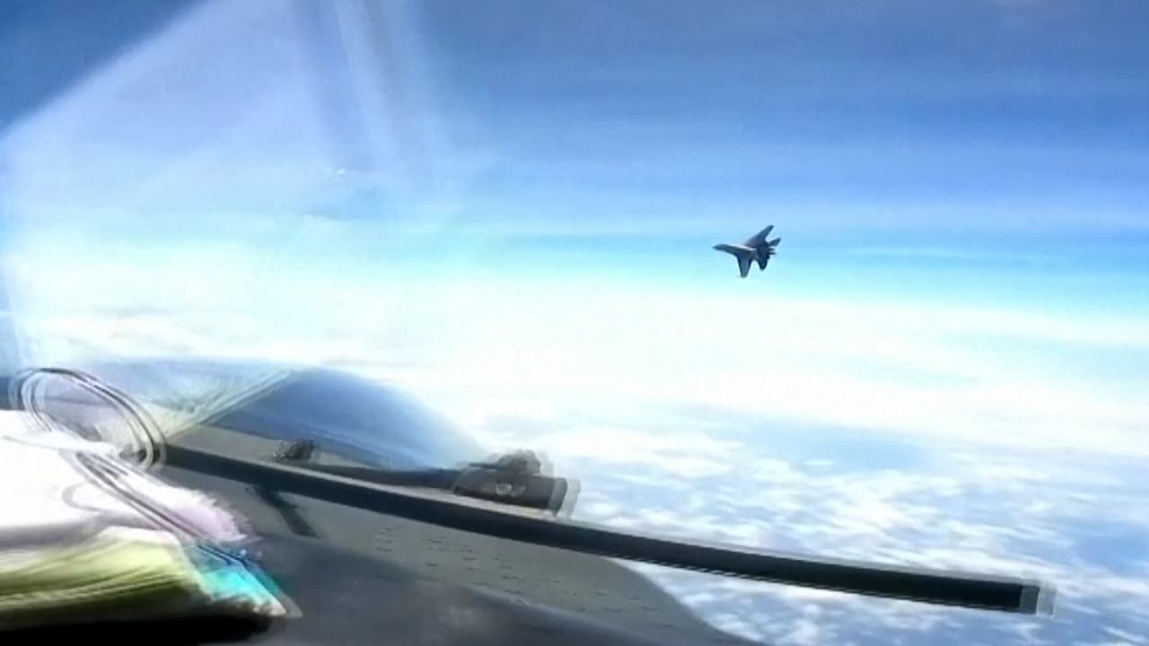 El momento en que un avión de combate chino realiza una maniobra “innecesariamente agresiva” cerca de otro estadounidense