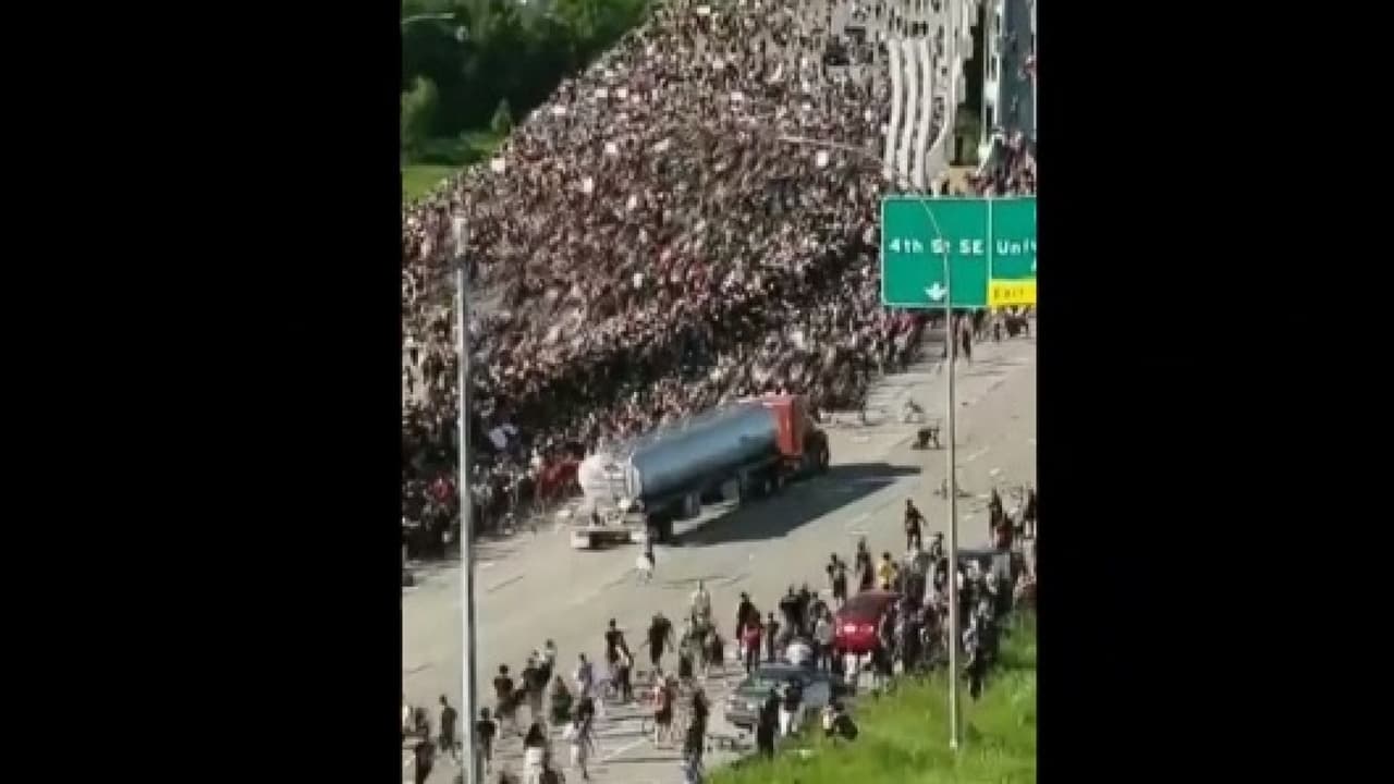 El momento en que un camión cisterna aceleró contra la multitud que protestaba en Minneapolis