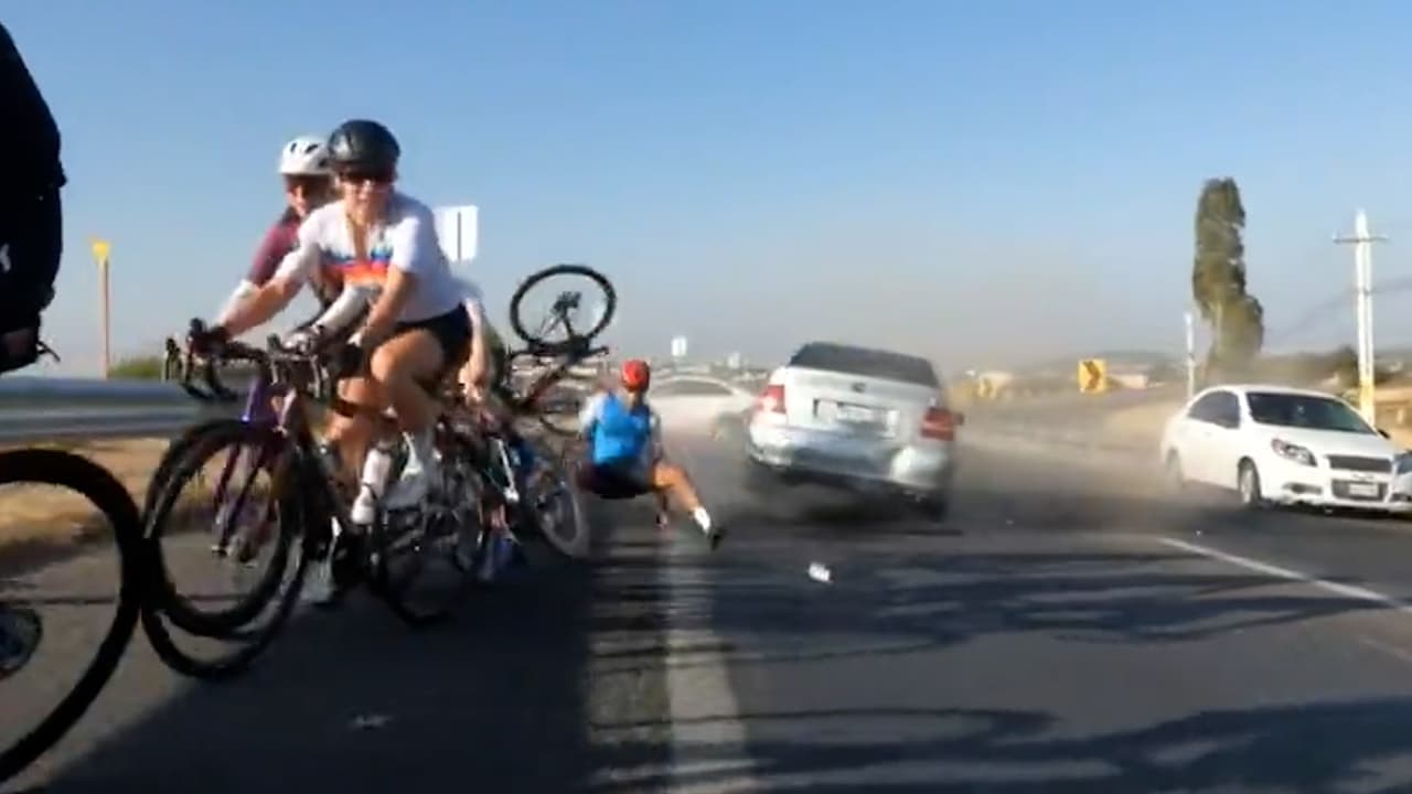 El momento en que un conductor alcoholizado choca contra un grupo de ciclistas