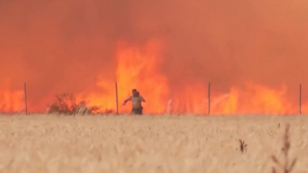 Ángel Martín Arjona, el dueño de un almacén en Tábara, España, intentaba cavar una trinchera en el campo para evitar que un incendio avanzara hasta la ciudad cuando fue rodeado por las llamas. Arjona fue trasladado en helicóptero a un hospital con quemaduras en todo su cuerpo.