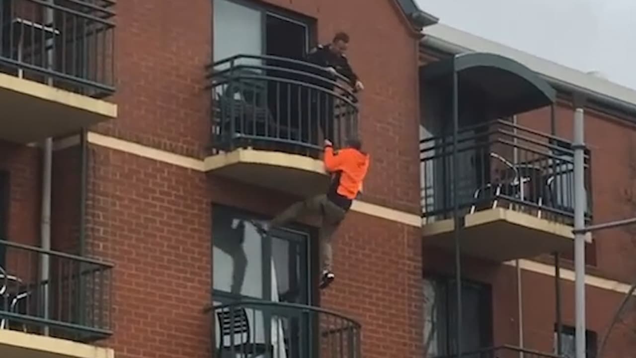 El momento en que un prófugo de la ley intenta escapar trepando a un edificio