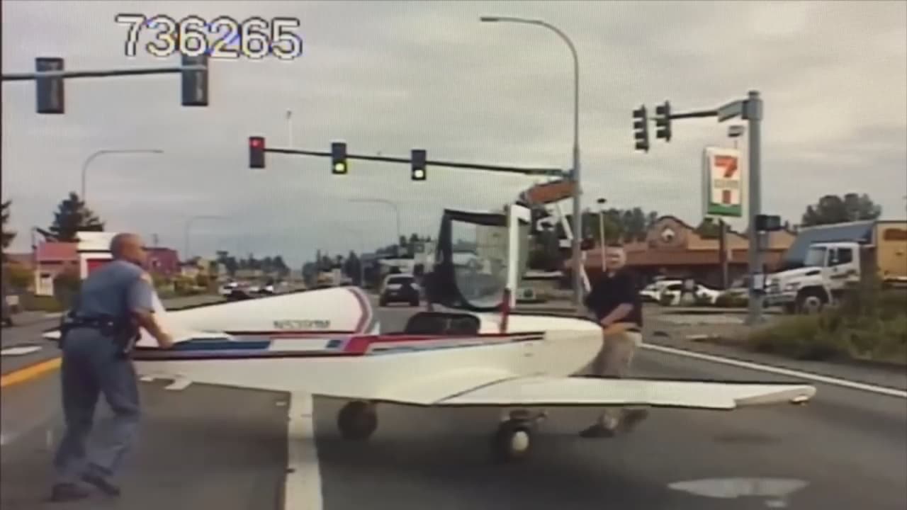 El momento en que una avioneta aterriza de emergencia en la mitad de una autopista en Washington