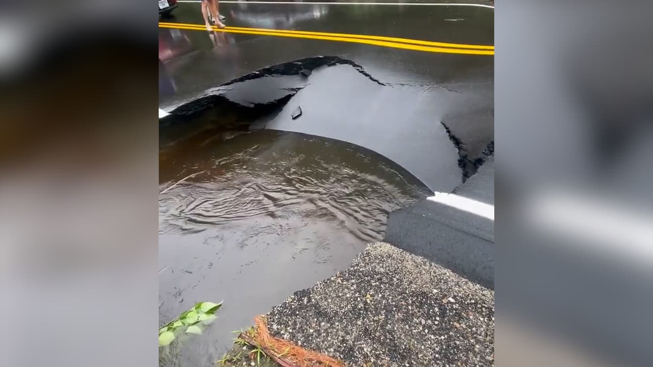 Un residente local captó en video el momento en que una carretera cede ante la fuerza del agua y se derrumba en Hillsboro, New Hampshire. Sucedió el pasado 16 de julio en medio de advertencias por inundaciones repentinas en la zona. Más información en
