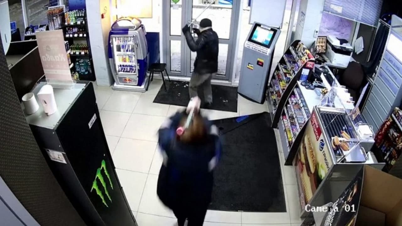 El momento en que una empleada de una gasolinera logra repeler un ladrón con el palo de una mopa