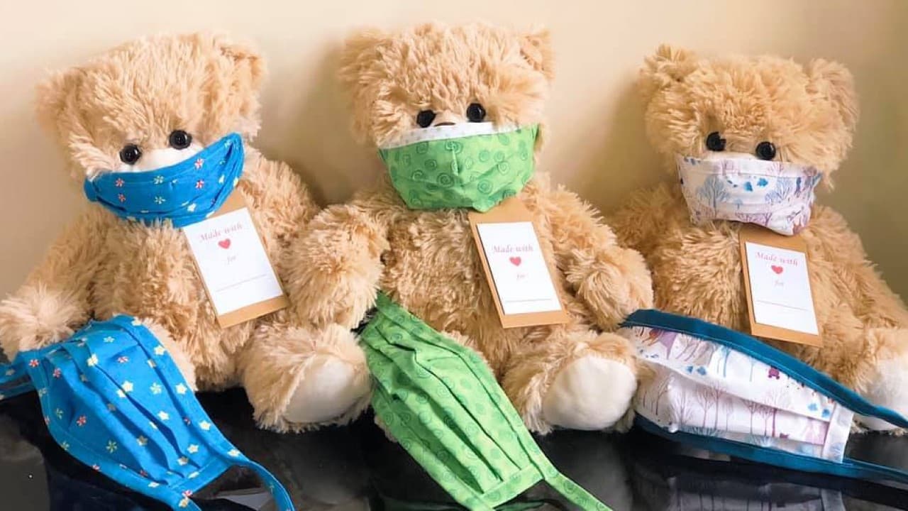 La maestra Olivia Carlson creó los peluches con tapabocas para sus alumnos con un mensaje personalizado.