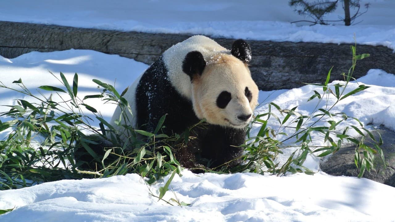 El panda se despertó con un montón de nieve a su alrededor y dejó encantados a todos con sus piruetas.