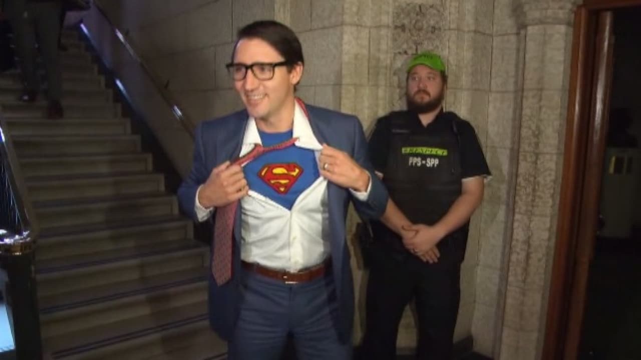 El primer ministro canadiense llega a trabajar disfrazado de Superman la víspera de Halloween