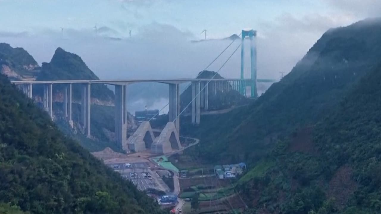 El Huajiang Grand Canyon Bridge se ubica a 2,050 pies sobre el río Beipan, en la provincia de Guizhou. Su construcción permitirá a los autos reducir un trayecto de dos horas a solo dos minutos al atravesar una zona montañosa.