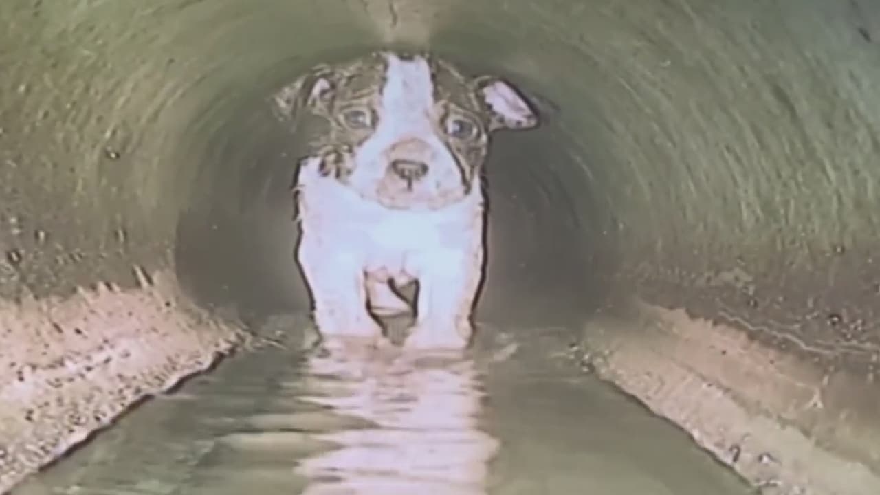 El rescate de una perrita que cayó al alcantarillado y quedó atrapada