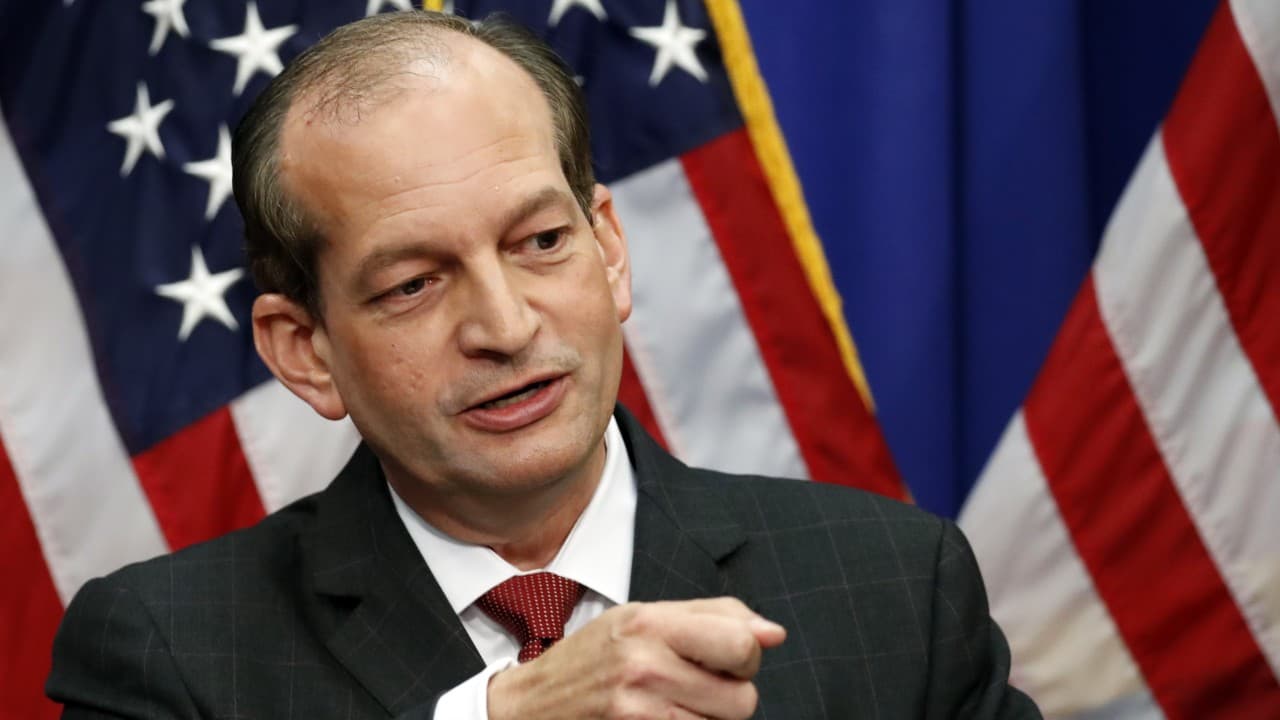 El secretario de Trabajo, Acosta, defendió (en español) su papel en el acuerdo de Epstein