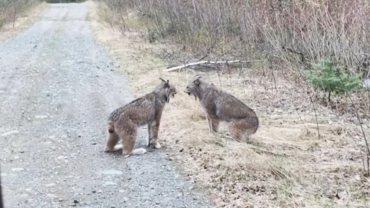 Aunque todavía no está claro exactamente qué estaban haciendo los dos linces, ya que normalmente son animales solitarios, la interacción probablemente tenía que ver con un intento de reclamar su territorio. El video fue grabado en Ontario, Canadá.