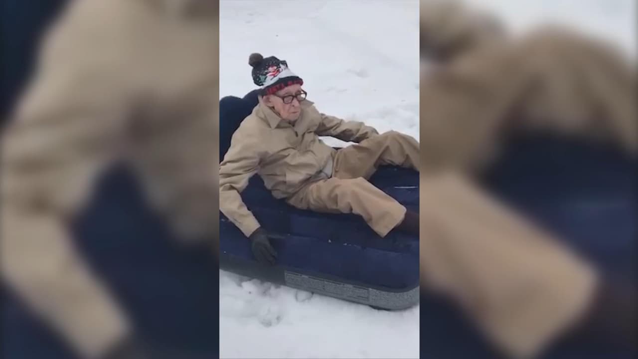 El reverendo retirado, Maurice Staley, de 91 años, disfrutó del día de nieve junto a unas compañeras del centro para personas mayores Trinity Oaks, en Carolina del Norte.