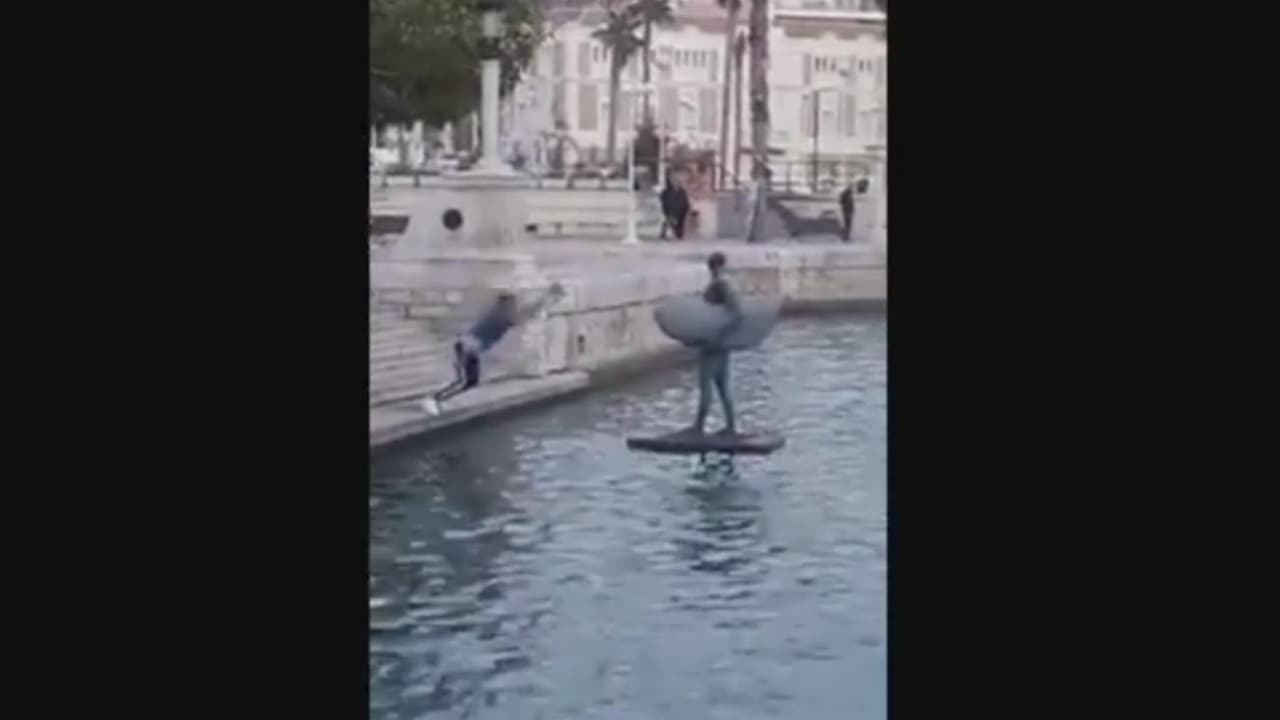 Un hombre en la ciudad española de Alicante sufrió un embarazoso momento cuando intentó dar un salto hacia la estatua de 'El Regreso De Ícaro', una escultura que representa la figura mítica griega de Ícaro.