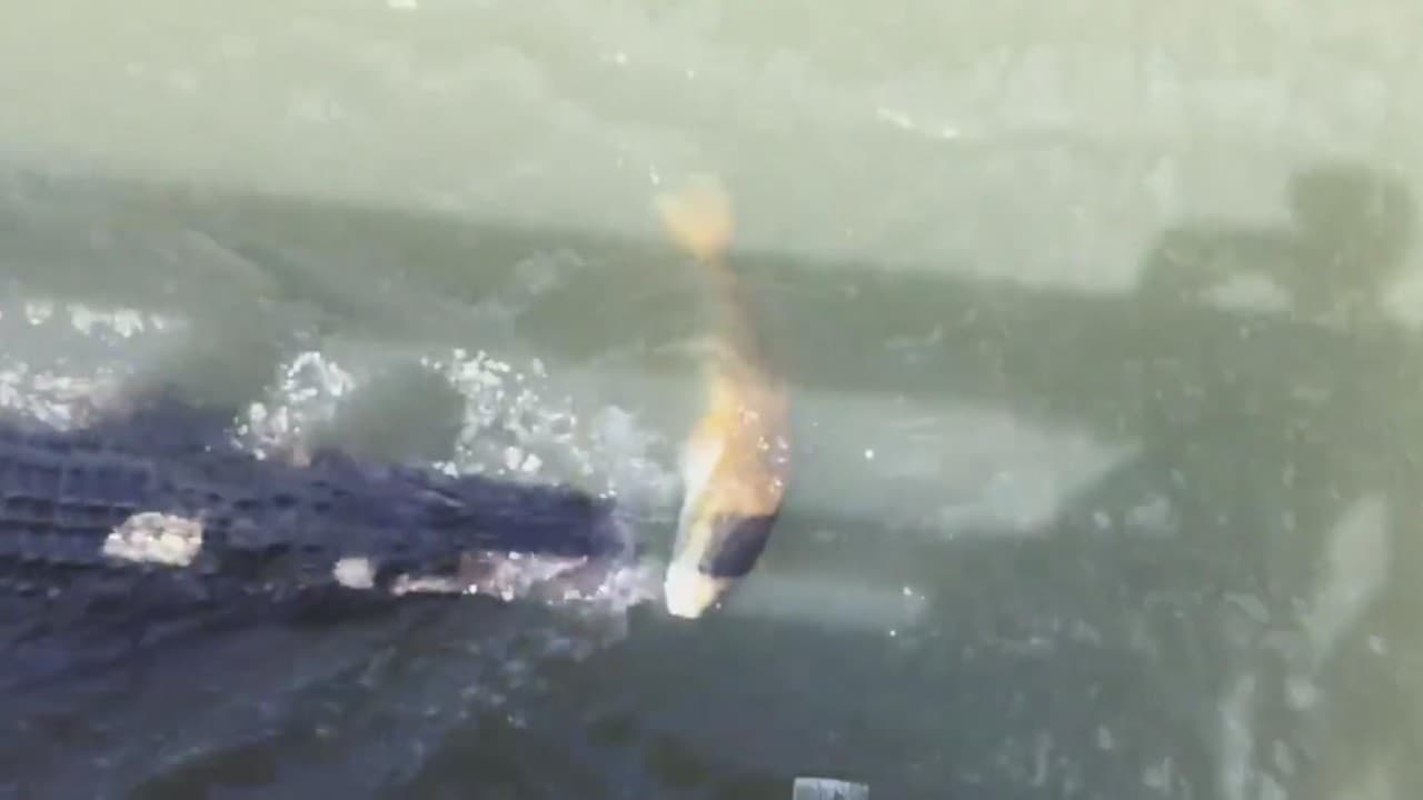 Cuando este niño trataba de pescar, otro depredador tenía los ojos puestos en la misma presa.