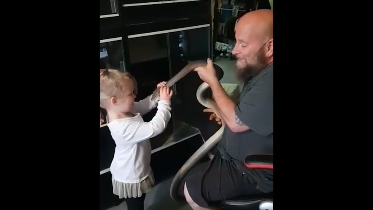 Esta pequeña intrépida demuestra lo valiente que es junto a la serpiente de su abuelo, quien se dedica a atrapar estos reptiles profesionalmente en Australia.