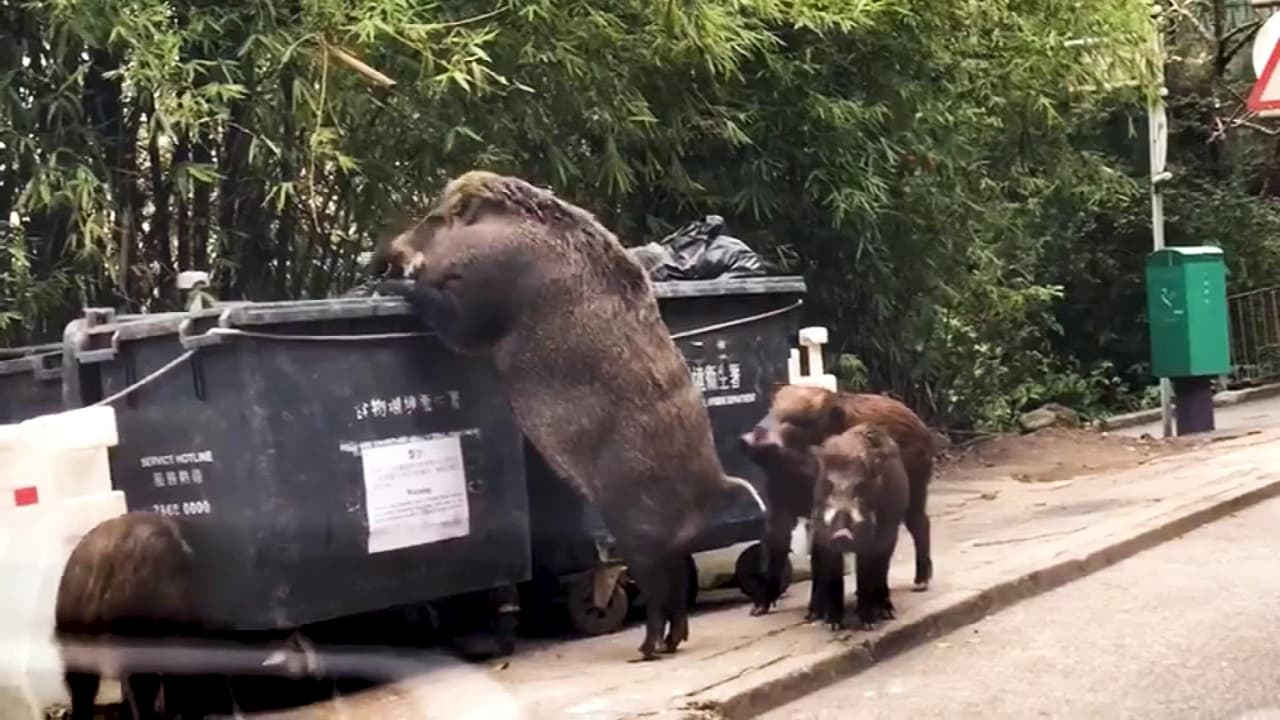 La escena: una mamá jabalí se pone en dos patas para buscar comida en un basurero mientras sus crías hacen guardia. Esas imágenes han creado furor en las redes sociales y asombro en las calles de China.