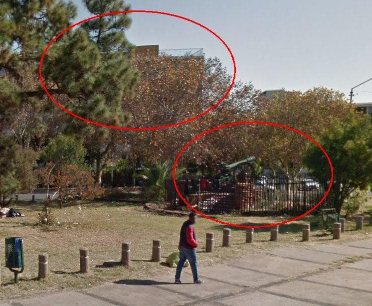 Parece que se trata del Memorial de Artillería Pesada de Sudáfrica. El 29 de agosto de 2020, miles de ciclistas en Sudáfrica participaron en una protesta contra los asesinatos en granjas y parece que el video es metraje de ese evento. Eso explicaría la clara falta de banderas estadounidenses y carteles de campaña de Trump. Aquí hay más imágenes del evento (archivado aquí), cerca del monumento: