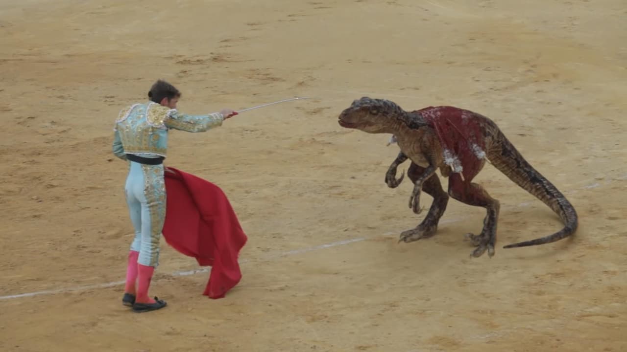 El video muestra a un torero que se enfrenta a un velociraptor y se ha vuelto viral en las redes desde que fue publicado el pasado 28 de abril por una organización benéfica francesa pidiendo el fin del torneo. Ya ha acumulado más de un millón de vistas en Facebook.