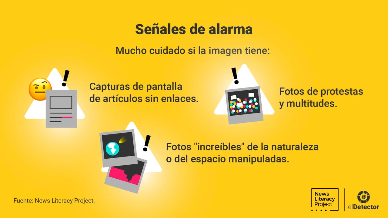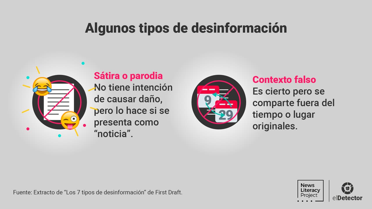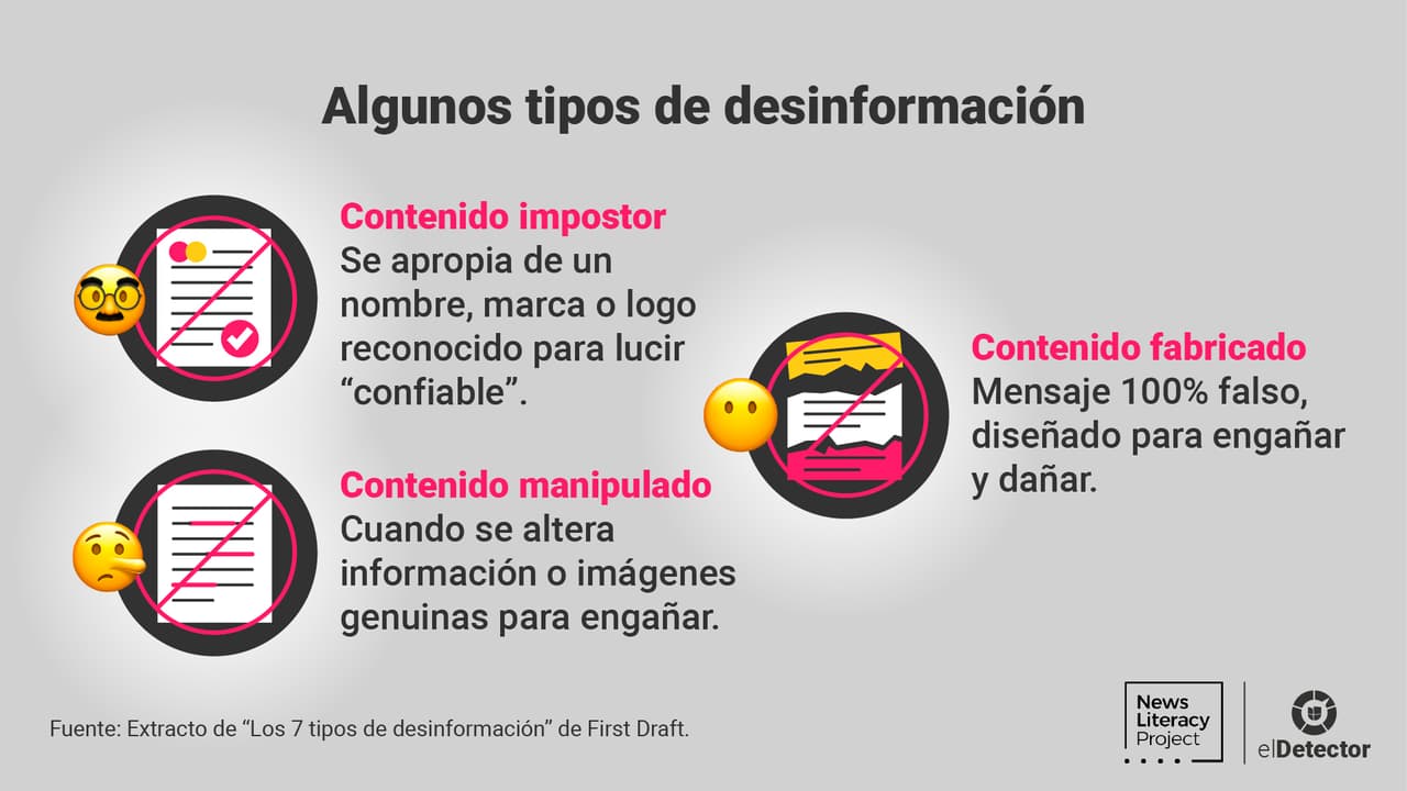 Para celebrar este esfuerzo, en elDetector hicimos estas tarjetas ilustradas en español para explicar en pocas palabras los principales tipos de desinformación, cómo circulan, cuáles son las señales de alarma que debemos tomar en cuenta al recibir un video, texto o imagen y cómo podemos protegernos mejor ante los mensajes falsos.