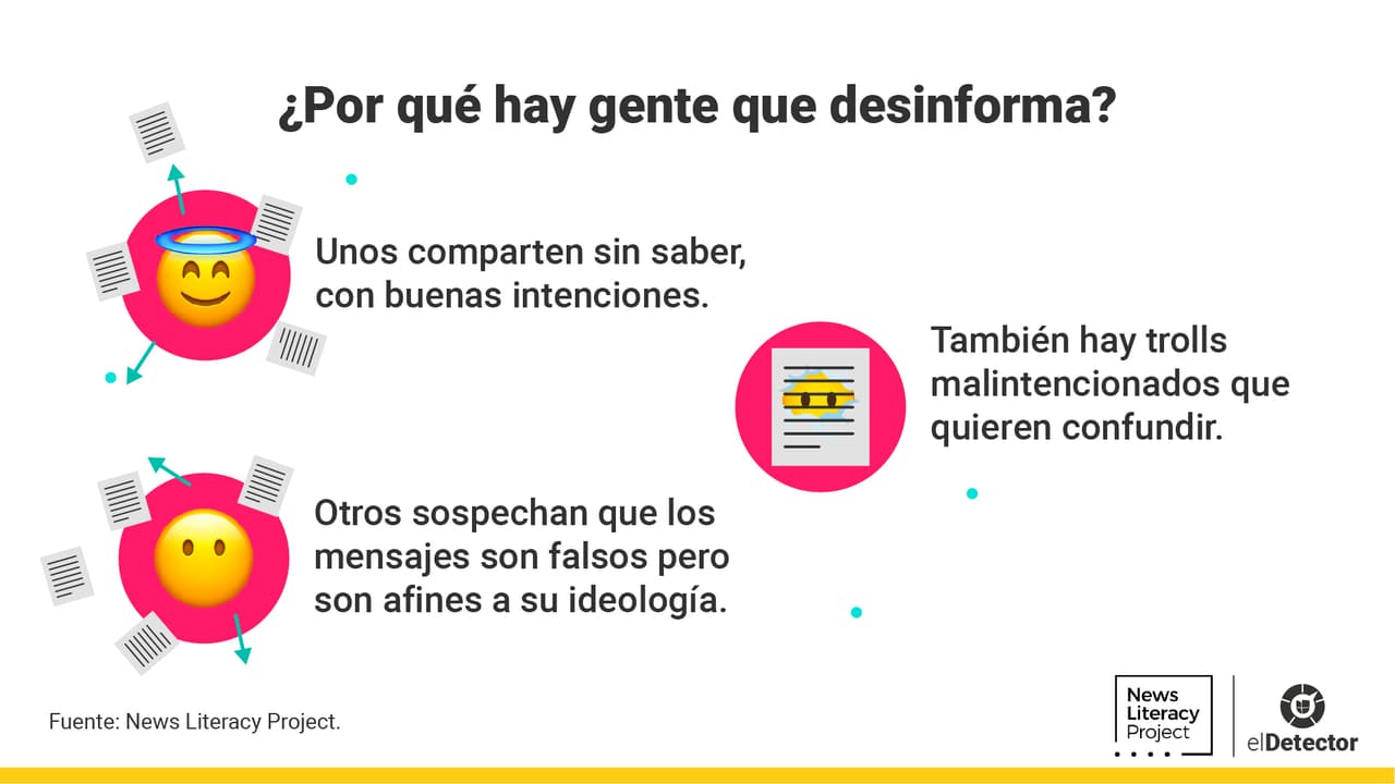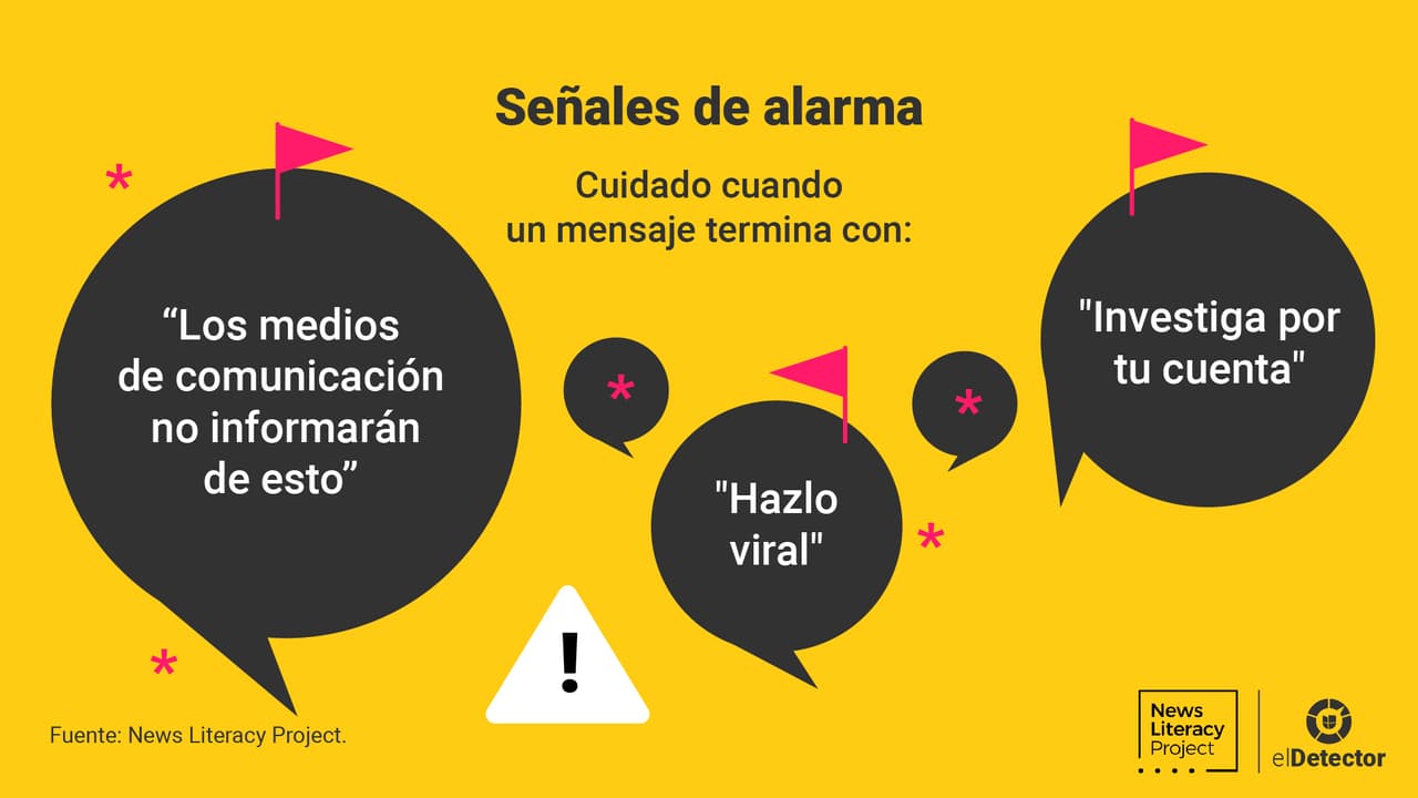 ¿Te llegan mensajes que no sabes si son ciertos o no? ¿Quieres enviarles consejos y herramientas a tus amigos para que dejen de enviar desinformación? En elDetector nos sumamos a la Semana Nacional de Alfabetización en Noticias de la organización no gubernamental News Literacy Project.