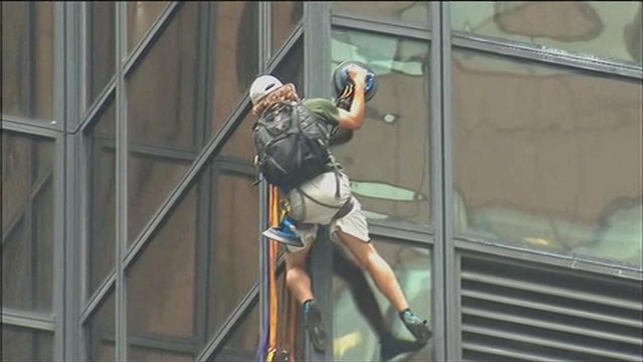 Durante su escalada, estaba sujeto por un arnés enganchado a dos ventosas que fijaba a los cristales del edificio. Las otras dos las iba colocando más arriba y así iba subiendo poco a poco por la fachada sur. Los policías le dijeron que los cristales no eran seguros pero no hizo caso de la advertencia. Su objetivo era llegar hasta arriba para llamar la atención de Donald Trump.