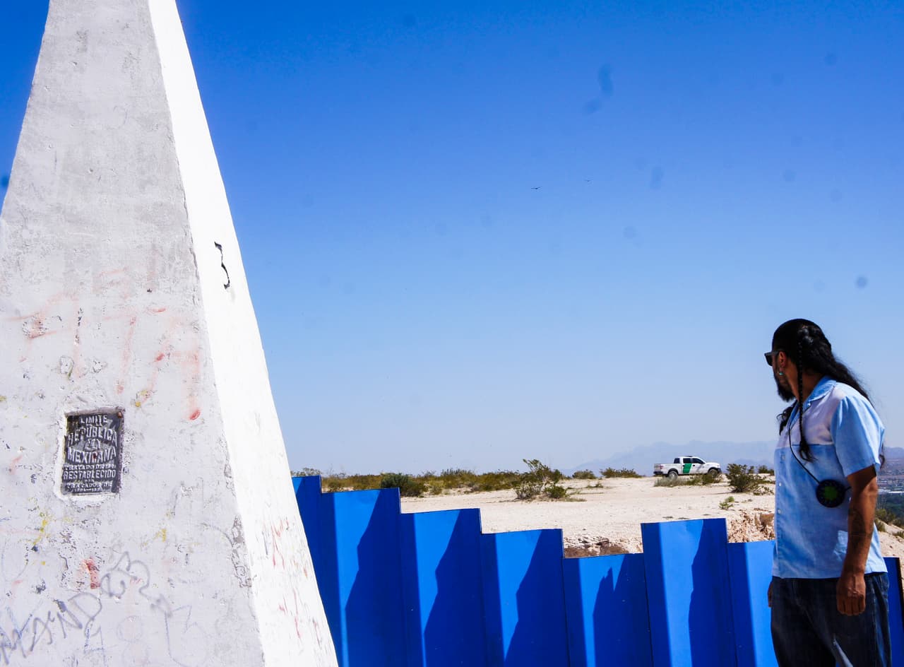 Fernández ha querido borrar ese recuerdo con su pintura tipo minimalista en el tramo de 20 metros de ancho y seis de alto, sobre una pendiente arenosa que dificulta el acceso y justo al frente de un monumento colocado por la Comisión Internacional de Límites y Aguas ( IWBC por sus siglas en inglés) que dice: Límite de la Republica Mexicana.