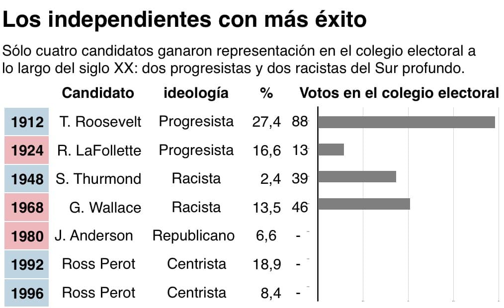 La candidatura como independiente de McMullin no es la primera en la historia, aunque a lo largo del siglo XX sólo cuatro aspirantes a presidente ganaron representación en el colegio electoral, entre ellos Teddy Roosevelt, quien en 1912 se lanzó como progresista.