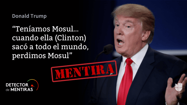 12. Trump atribuyó a Clinton la caída de la ciudad de Mosul, en Irak, a manos de ISIS en 2014. Pero Clinton no tenía responsabilidad en el departamento de Estado en ese momento. Mira por qué es mentira.