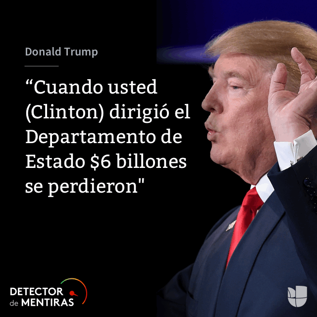 4 . Donald Trump acusó a su oponente de perder $6,000 millones de dólares en el Departamento de Estado, pero es mentira. Aquí te explicamos por qué.