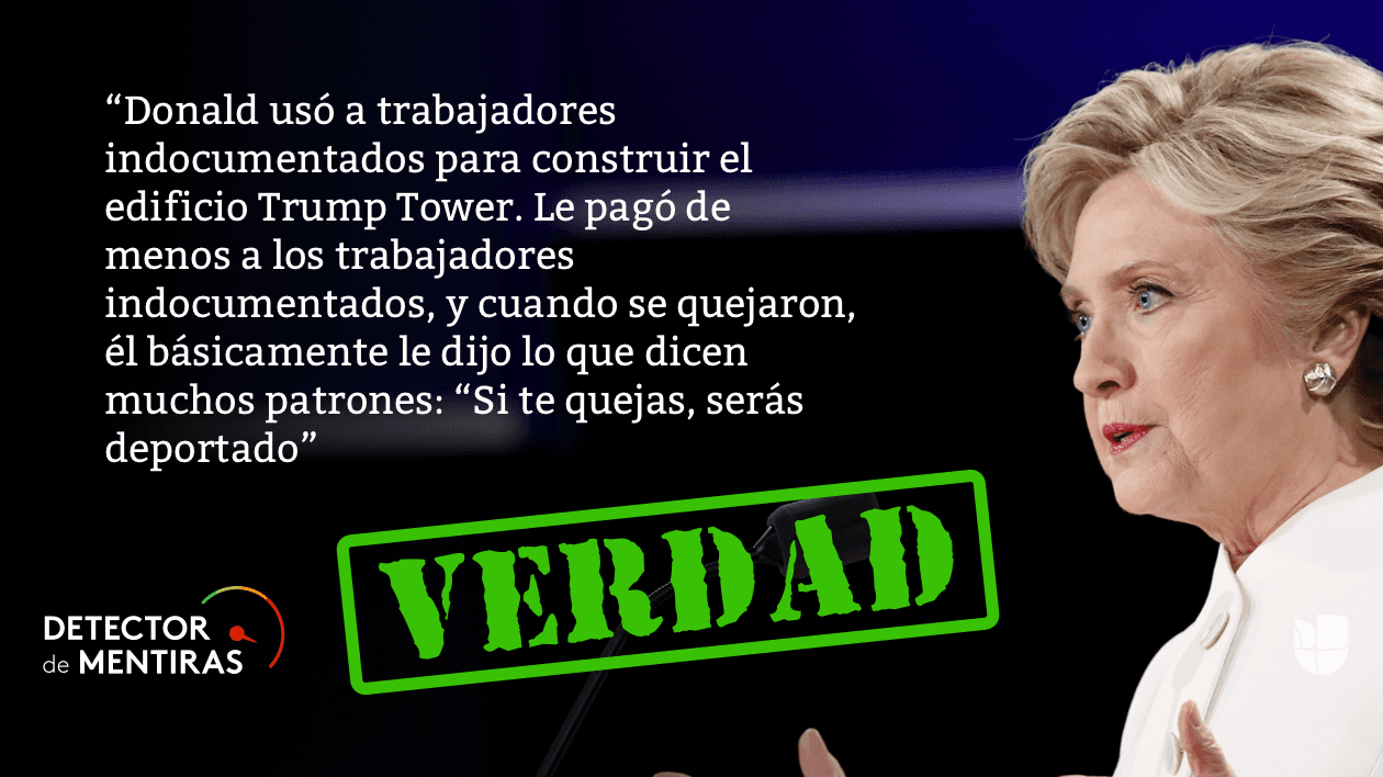- Clinton acusó a Trump de usar a trabajadores indocumentados para construir una de sus edificaciones más emblemáticas. Y sí, fue así.