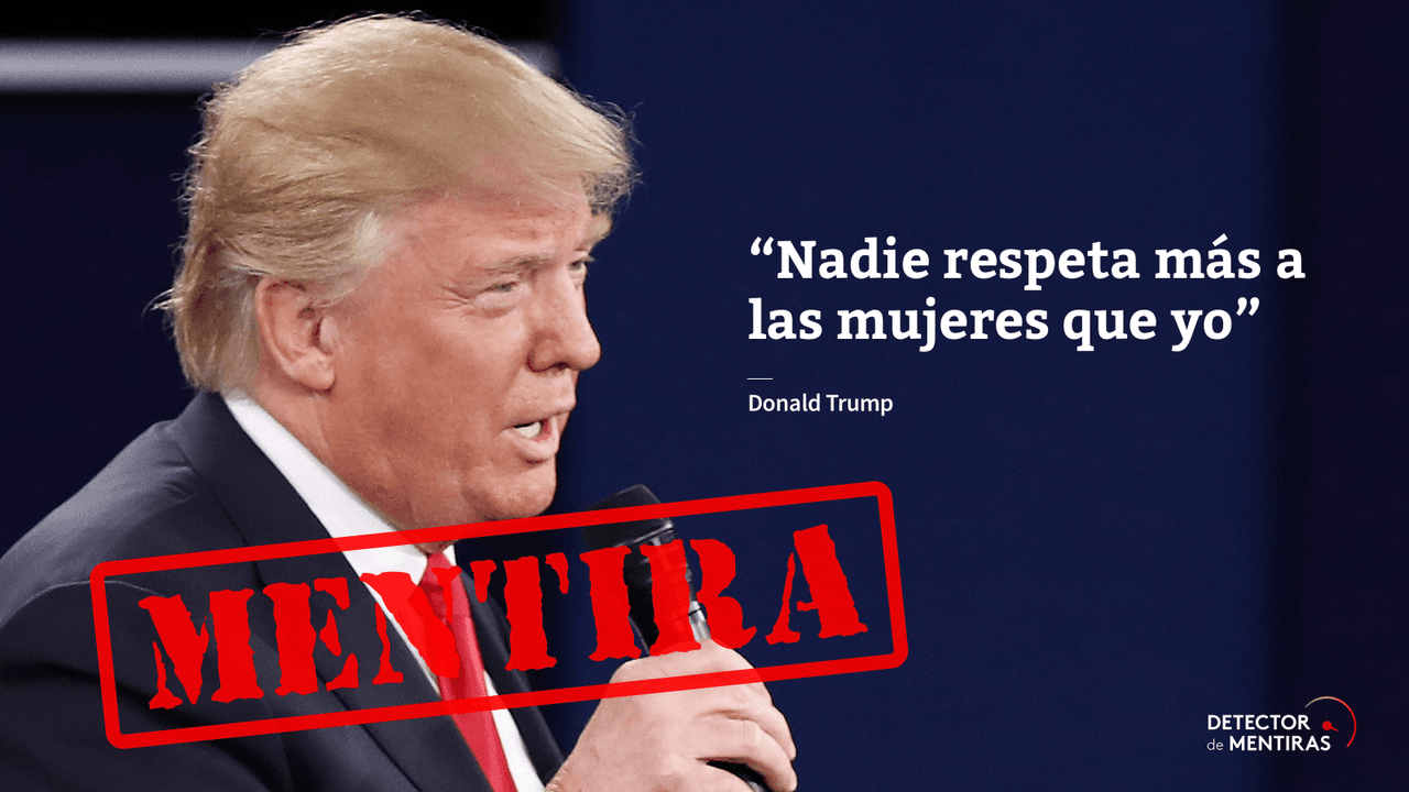 Tras disculparse por los comentarios sobre mujeres que realizó en una conversación que quedó grabada en 2005, en los que aseguró haber besado y tocado a mujeres sin su consentimiento, Trump dijo que "nadie respeta más a las mujeres que yo", algo que aunque subjetivo, podemos analizar como mentira.