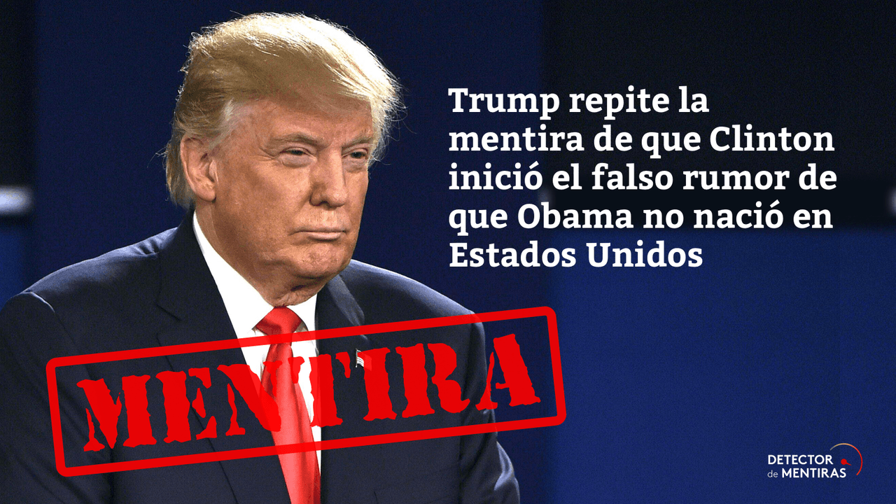 Trump volvió a decir que la campaña presidencial de Hillary Clinton en 2008 inició el rumor de que Barack Obama (entonces su rival en las primarias demócratas) no nació en Estados Unidos. Tal acusación la analizamos también en el primer debate y consideramos que era mentira.