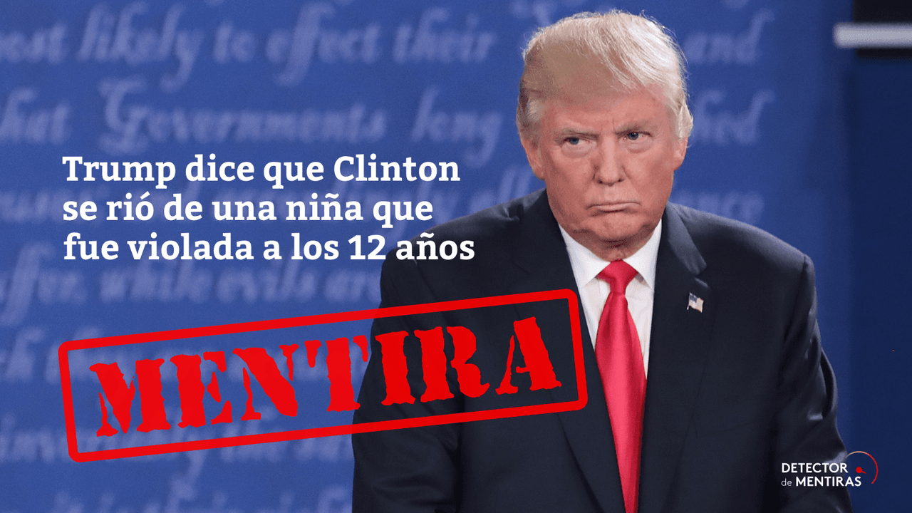 Trump aseguró que Hillary Clinton se rió de una niña que fue violada a los 12 años en Arkansas luego de haber defendido a su presunto agresor en corte. Consideramos que la aseveración de Trump es mentira.