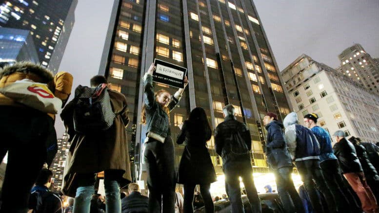 “Esto probará ser un gran momento en la vida de TODOS los estadounidenses. Nos uniremos y ganaremos, ganaremos, ganaremos!”, tuiteó el sábado, mientras unas 15,000 personas se preparaban para marchar hacia la Trump Tower bajo la consigna “Trump NO es mi presidente”.