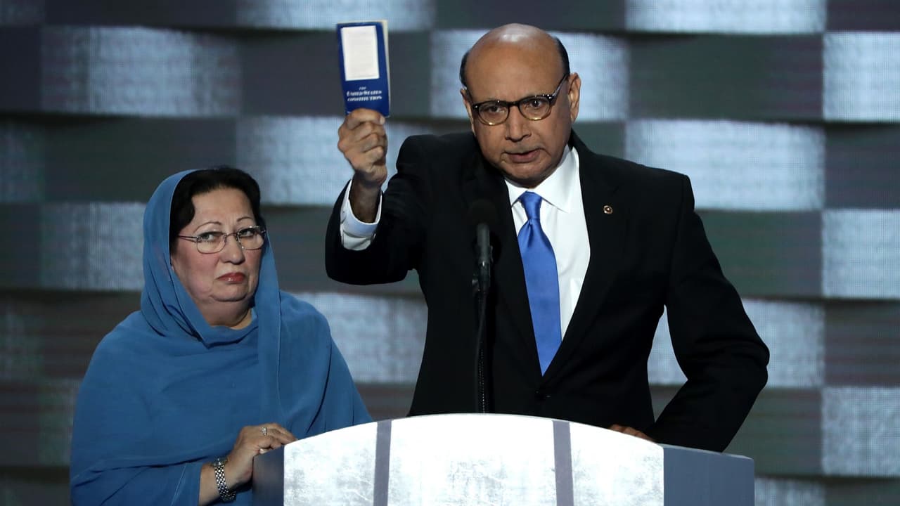 Flanqueados por una foto de su fallecido hijo, los Khan, Khizr y Ghazala, subieron al escenario de la Convención Nacional Demócrata. Constitución en mano, el padre envió un duro mensaje a Trump, diciéndole que constantemente difama e irrespeta a inmigrantes como los musulmanes y busca desestimar los aportes que hacen al país. "No has hecho ningún sacrificio ni has sacrificado a nadie", le espetó.
