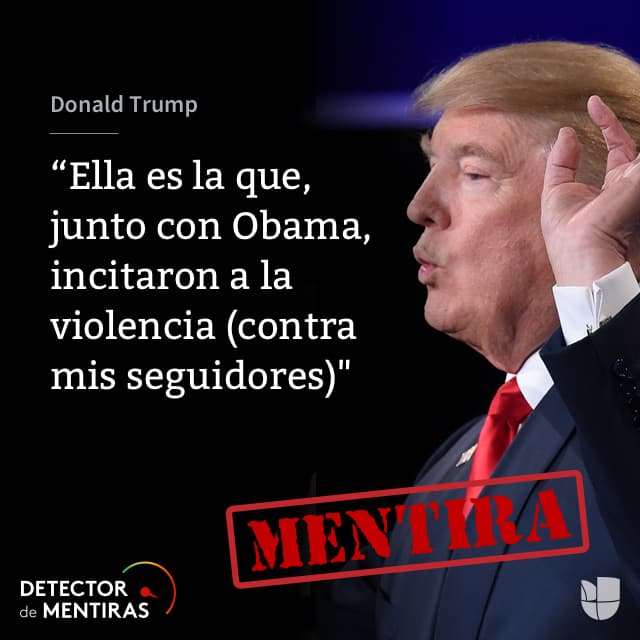 - Trump acusa a Clinton de llevar gente a sus eventos para crear violencia. El republicano fue subiendo el tono en las acusaciones hasta decir: "Habla de violencia y es ella quien la crea en mis eventos de campaña".