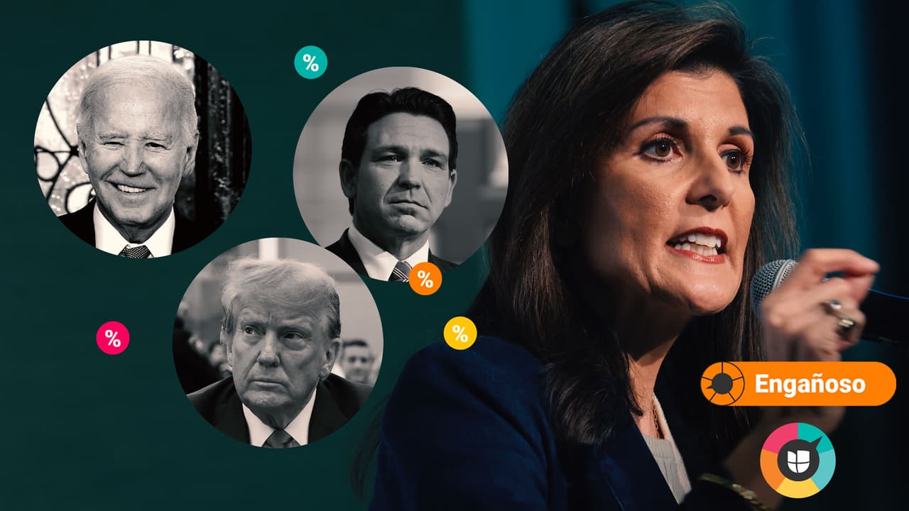 En cuanto a Trump, el promedio de RealClear Polling en realidad da una ventaja de 1.2 puntos al expresidente republicano frente a Biden. Y en algunos de los sondeos Trump está 4 y 6 puntos por encima, no solamente por un máximo de 2 puntos, como quiso dejar ver Haley.