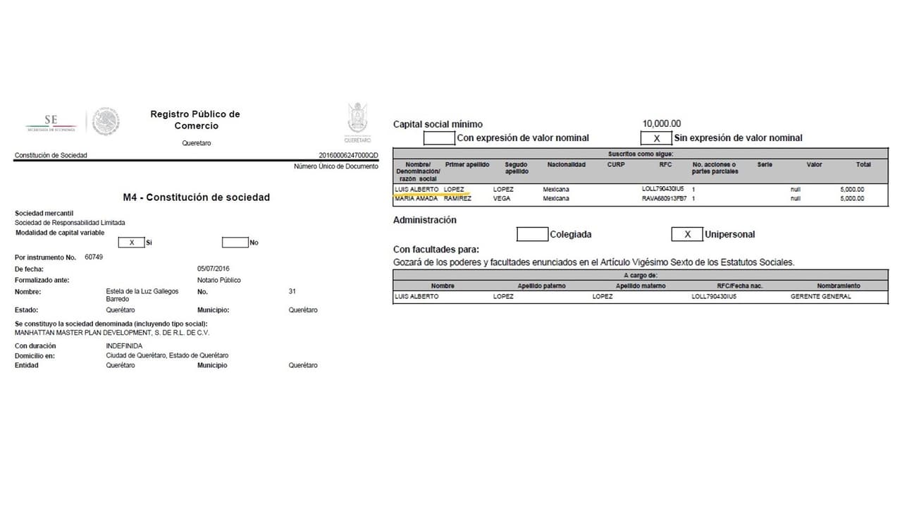 En una conferencia de prensa en Ciudad de México, el abogado de los dos testigos colaboradores de PGR expuso que el objetivo de este ocultamiento era impedir que se conociera que el socio original de Manhattan Master Plan Development, Luis Alberto López, era en realidad un prestanombres, que trabajaba como chofer de Manuel Barreiro.