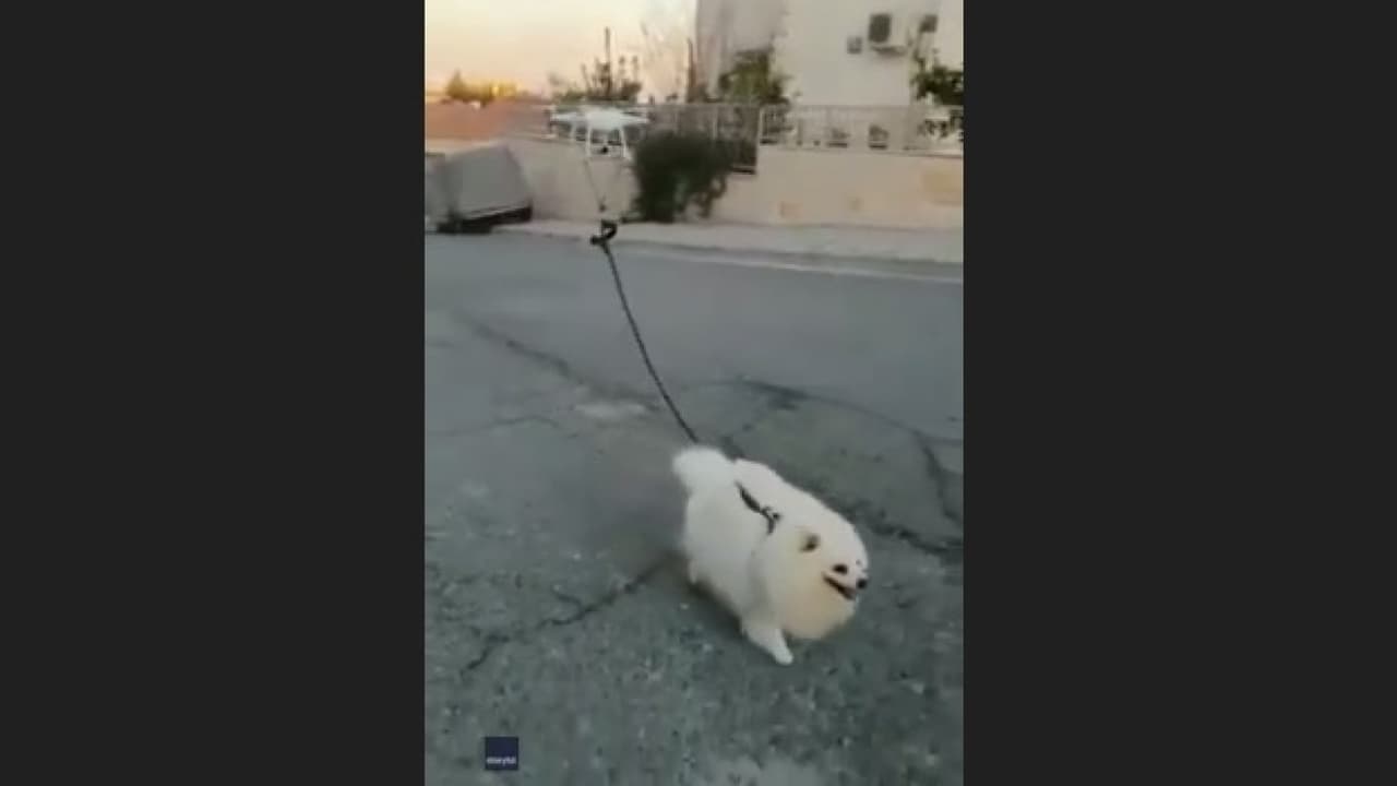 Vakis Demetriou recurrió a un dron para que sacara a pasear a su perro mientras él lo controlaba desde su balcón en la isla de Chipre en el quinto día de su confinamiento por el covid-19.