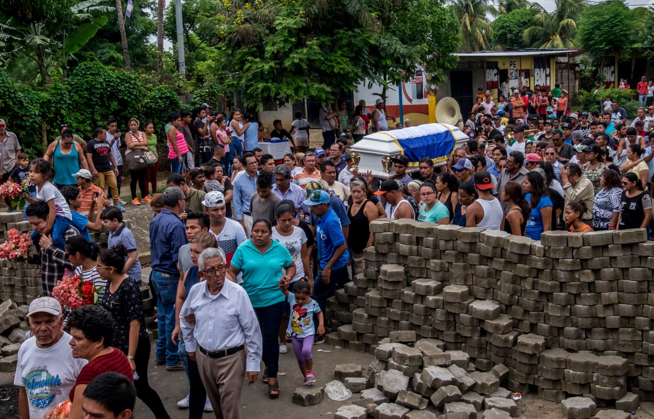 Un ataúd blanco se balancea sobre hombros y lágrimas mientras cruza las barricadas que se abren a su paso. Cristian Gutierrez Ortega, de 60 años, se rebeló contra el gobierno de Somoza en 1978, pero no sobrevivió a las balas del gobierno de Ortega en 2018. Un francotirador le acertó en el pecho mientras participaba en la defensa de las barricadas junto a sus vecinos.