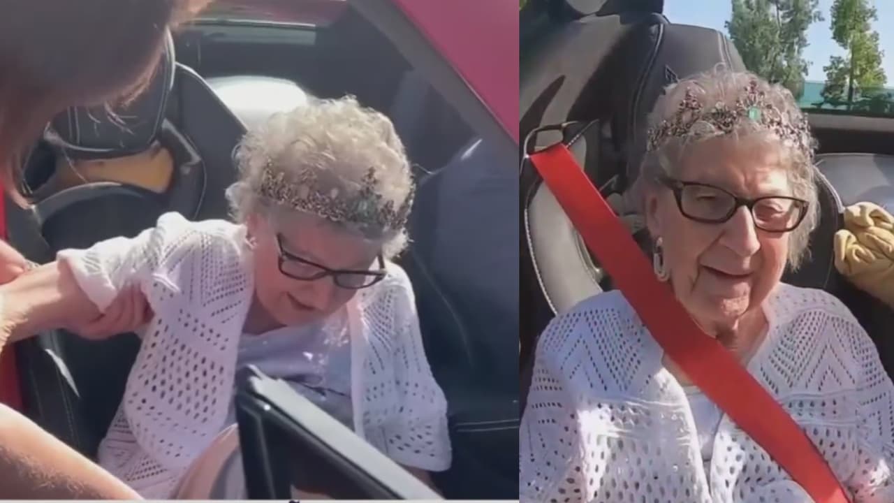 En su cumpleaños número 100 la mujer le comentó a la persona que la cuida que le gustaría viajar en un Corvette convertible de color rojo, aventura que le fue concedida por un club de autos en Arizona. Con una corona en su cabeza y muy nerviosa, pero feliz, fue captada la abuela al cumplir su anhelo.